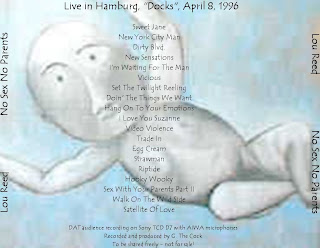 Track 01. Intro Track 02. Sweet Jane Track 03. Vicious (visit the html page to download the track) Track 04. Ride Sally Ride Track 05. Heroin (visit the html page to download the track) Track 06. Sally Can’t Dance Track 07. Lady Day Track 08. I’m Waiting For The Man Track 09. Oh Jim Track 10. Walk On The Wild Side Track 11. White Light/White Heat Track 12. New York Telephone Conversation-Goodnight Ladies medley and applause Track 13. encore: Rock And Roll Track 14. Rock And Roll (reprise)